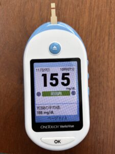 このワンタッチ・ベリオビューの数値を見た時に、ああもうデクスコムがエラー起こしてるんだってわかった。デクスコムはかなりかけ離れた数字を提示していたから。